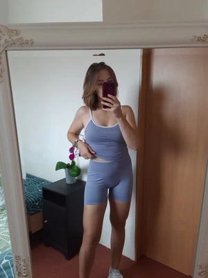 De yoga set is beschikbaar in de maten S, M, L, XL en XXL, zodat er voor elke vrouw een perfecte pasvorm is.